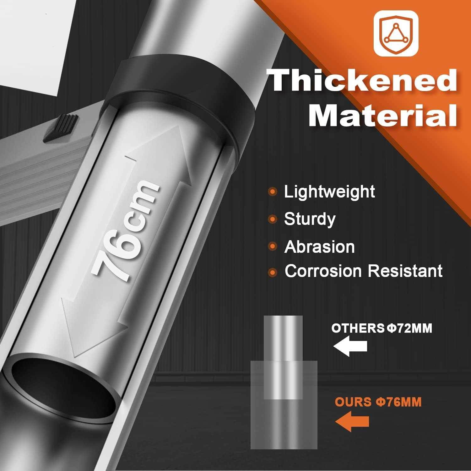 Safety of Use: The high quality construction of the telescoping ladder ensures that each part retracts safely. Smart locking pins hold the parts in place and prevent sliding, and the ladder will retract smoothly and slowly. Quality Material: The sturdy frame of the telescopic ladder is made of high-quality aluminum alloy, which is resistant to wear and corrosion, rust, high and low temperatures and aging, and can withstand up to 330 pounds of weight.