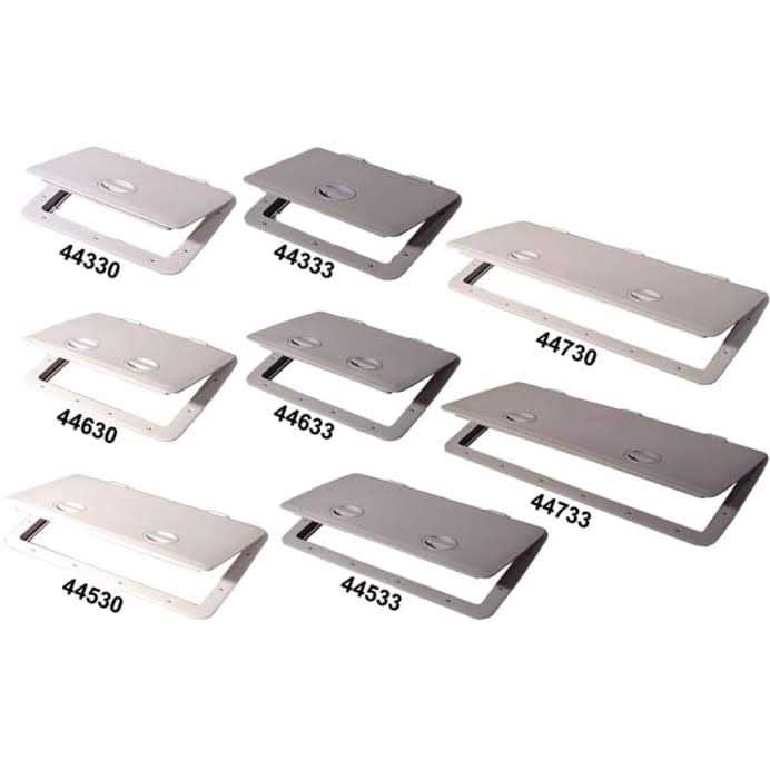 The Tempress Line Of Access Hatches are as functional as they are stylish. The Access Cam Hatch is made from a glass filled polypropylene, for strength and durability. All Access hatches are designed for heavy traffic areas, and will withstand people walking or standing upon them. The 1330 Access Cam Hatch features two dog down latches, that compress the gasket to create a weather tight seal with a quarter turn of the wrist. Access Hatches also utilize a patented integral hinge assembly that allows for easy lid removal. The beveled and skirted lid covers all fasteners for a clean look above or below decks. The Access Cam Hatch line is the great choice for easy dry storage, access to bait or fish wells, or electrical and plumbing lines.