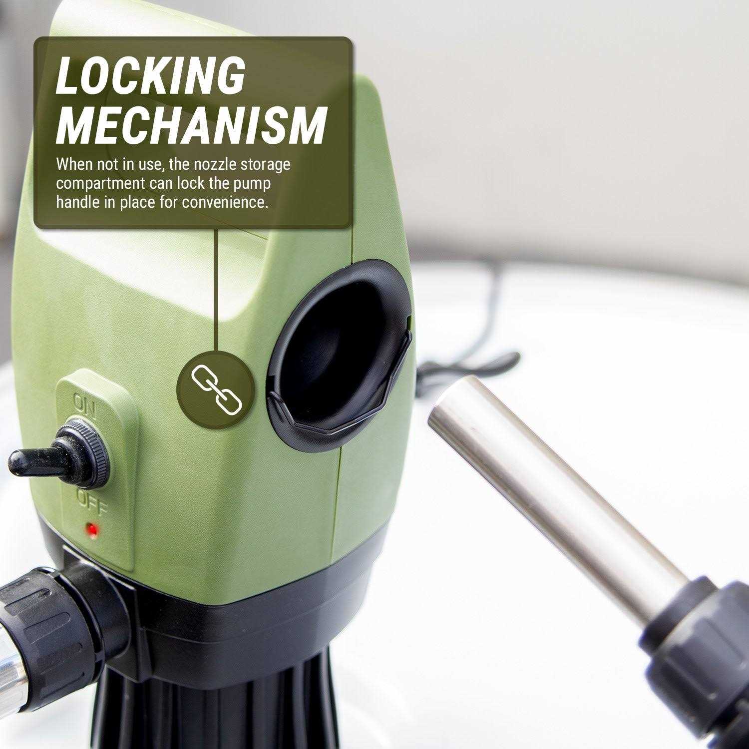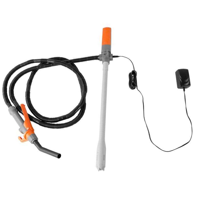The TeraPump 20005 TREDRUM-S Plug-In Electric Drum Barrel Pump with Rechargeable Battery is for use with gasoline, diesel, water, mild detergents, antifreeze, agricultural chemicals, windshield washer fluids, soaps and light oils. Do NOT use this pump with drinking water, flammable liquids or concentrated acids. It reaches a flow rate of 5 gallons per minute and features a 79 inch long corrugated P.E. constructed hose. The poly nozzle has a 0.7 inch diameter stainless steel sprout nozzle, a 2 inch NPT bung adapter and a 2 inch buttress adapter for plastic drums.