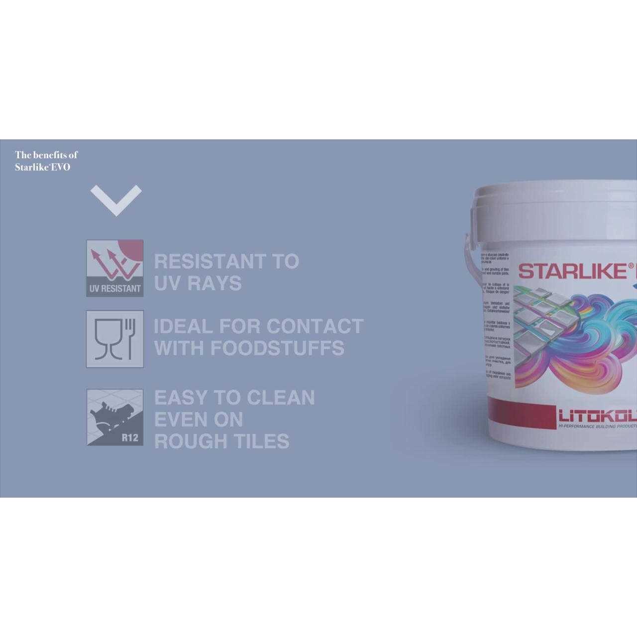 - The Finishes Shimmer additive is available in a pre-dosed package for the 2.5kg/5.5 lb. size of Starlike EVO Epoxy Grout buckets.