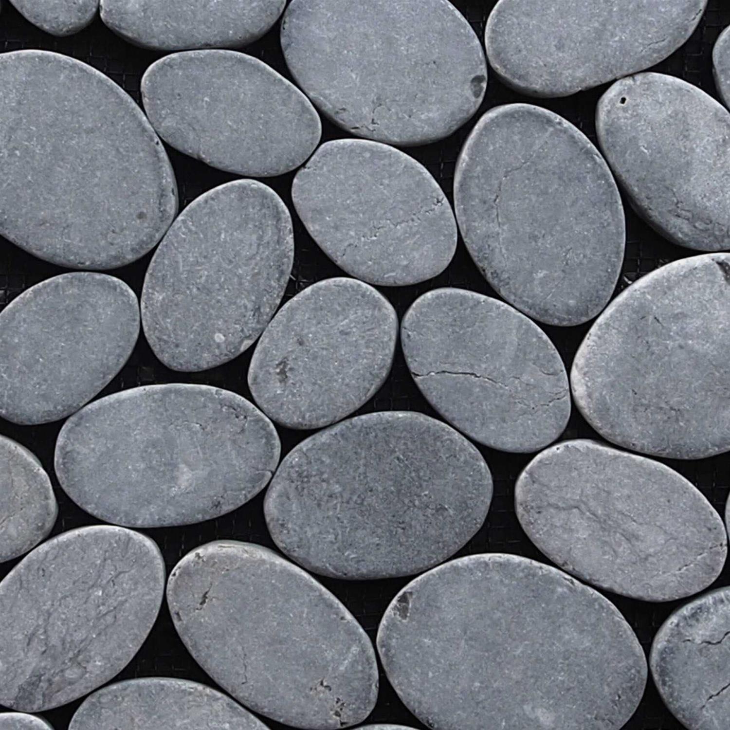 Natural Stone Floor and Wall Tile are made up of stones that are carefully cut and laid on mesh to create a 12 in. x 12 in. interlocking square. Each stone is a varying oval shape to create a pebble like appearance with a uniformed look. The Pebble Tile Marble Mosaic is our most unique product and allow for a seamless attractive finish to any project. Grade 1, natural stone mosaic tile for floor and wall use 11 1/4″ x 11 1/4″ x 9.525 mm thick mesh mounted natural stone mosaic tile Tumbled matte finish with no sheen and a slight variation in tone. For residential and commercial use Product must be sealed with a quality natural stone sealer before and after grouting. It is recommended you purchase a minimum of 10% overage to account for design cuts and patterns when actual order is placed.
