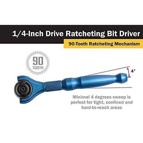 Titan 1/4″ Drive Aluminum Swivel Head Ratcheting Micro Bit Driver Blue