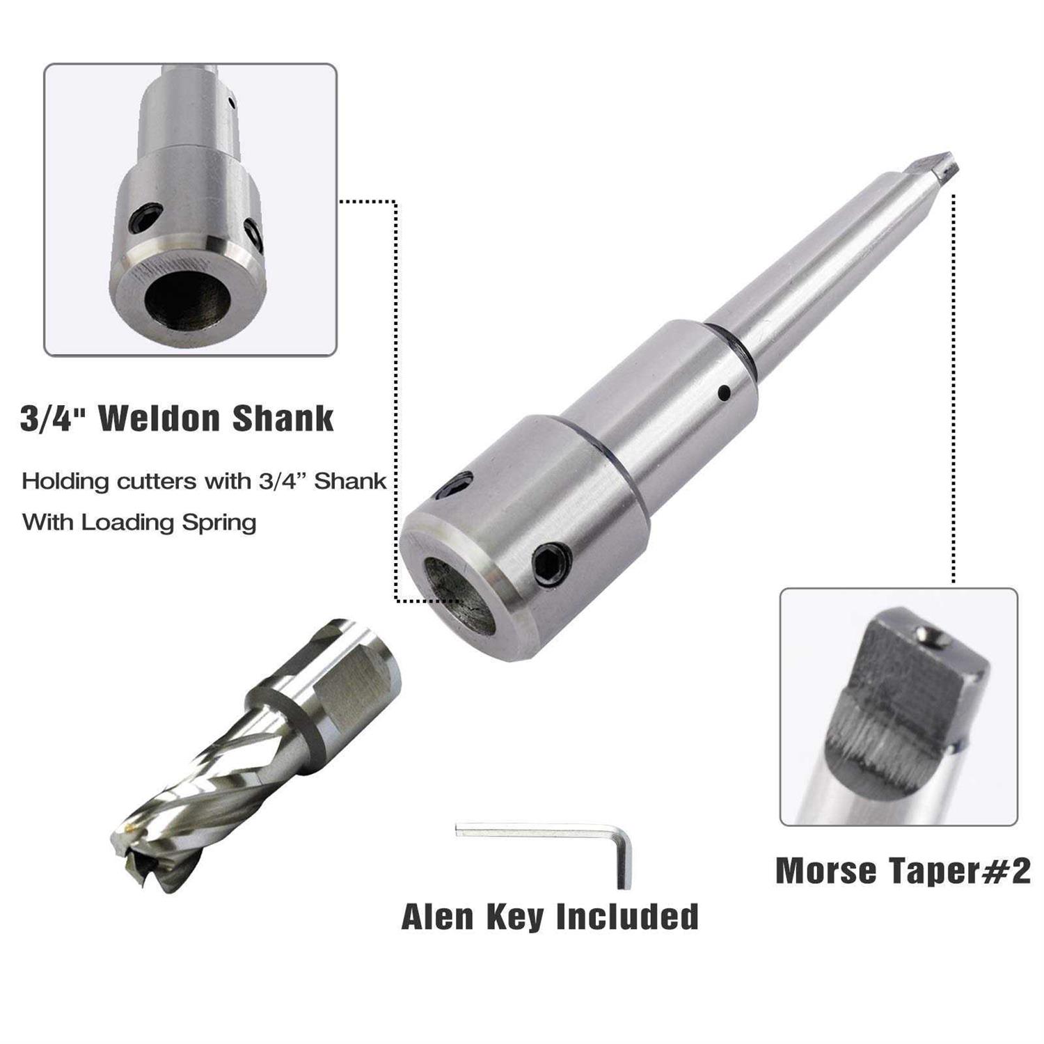 ul li MT2 to 3/4” Weldon Shank /li li With Key /li li For drill-use annular cutters on drill press /li li Fit with any size Annular Cutters which have 3/4” Weldon shanks /li /ul