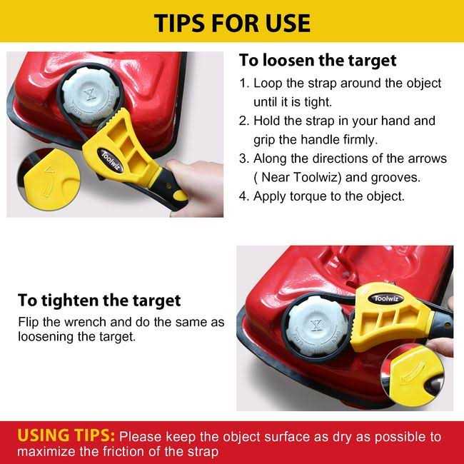 Wide range of applications: can be used for automobiles, tractors, oil filters, glued joints, shower heads, fuel filters, pot openers, PVC fittings, bottles, taps, water filters, sinks, taps Large adjustable wrench up to 150 mm/6 inches in diameter, small adjustable wrench up to 100 mm/4 inches in diameter The small wrench is ideal for removing nuts, bolts, caps etc. that you cannot remove. Durable and non-slip rubber strap. The flexible strap adapts to any shape and works easily in confined spaces Simple and easy to use giving you the right amount of power with perfect pressure Warm Tips The small strap wrench is not suitable for oil filter removal and large items such as drain pipes and water filters.