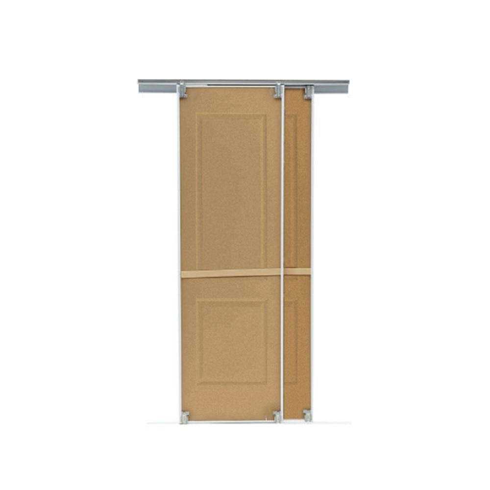 The Model 108 features primed ready-to-finish flush inserts in a raised 2-panel square top design. These doors are encased in a sleek frame with integrated ergonomic handle in your choice of finishes. These steel sliding bypass doors are constructed of hardboard and operate as a top roll system featuring Easy-Hang hardware, Quick-Click Anti-Jump Bottom Connectors and Invisible-Track System.