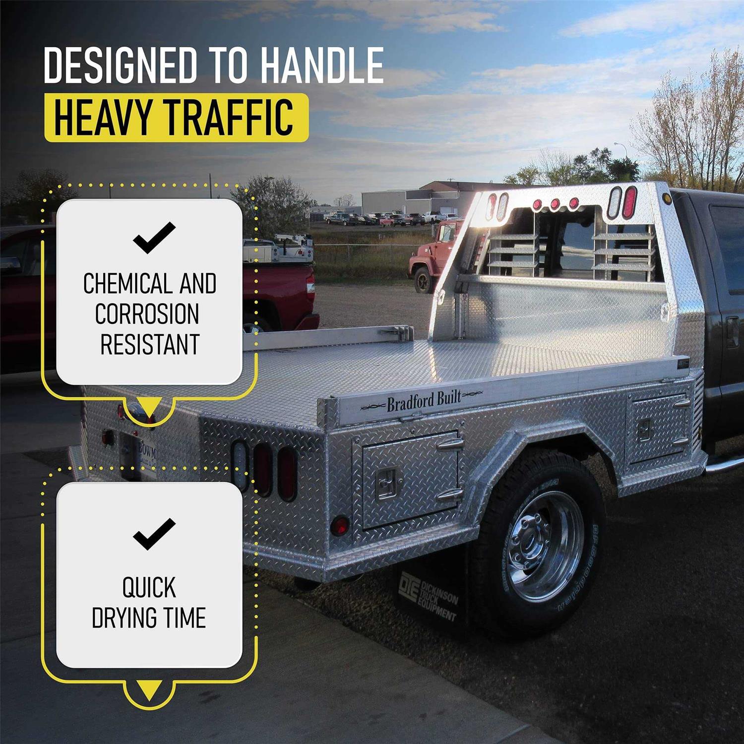 Ideal for industrial locations, this durable paint can be applied to walkways, factory floors, loading ramps, and other highly trafficked areas to prevent slips and falls. It features a highly-textured, aggressive anti-slip finish for traction, while the bright safety yellow color stands out against your decor. This extremely durable paint can be applied onto a wide variety of tough surfaces including concrete, metal, and wood. Since it is UV-resistant, it is built for both indoor and outdoor use. It is also resistant to chemicals and corrosion to remain in superior condition. This paint covers up to 100 sq. ft. per gallon with 2 coats recommended per surface. It includes a roller for application, and it dries in only 4 to 6 hours once applied. Highly durable and versatile, this non-skid paint is an ideal solution for preventing slips and falls in industrial environments.