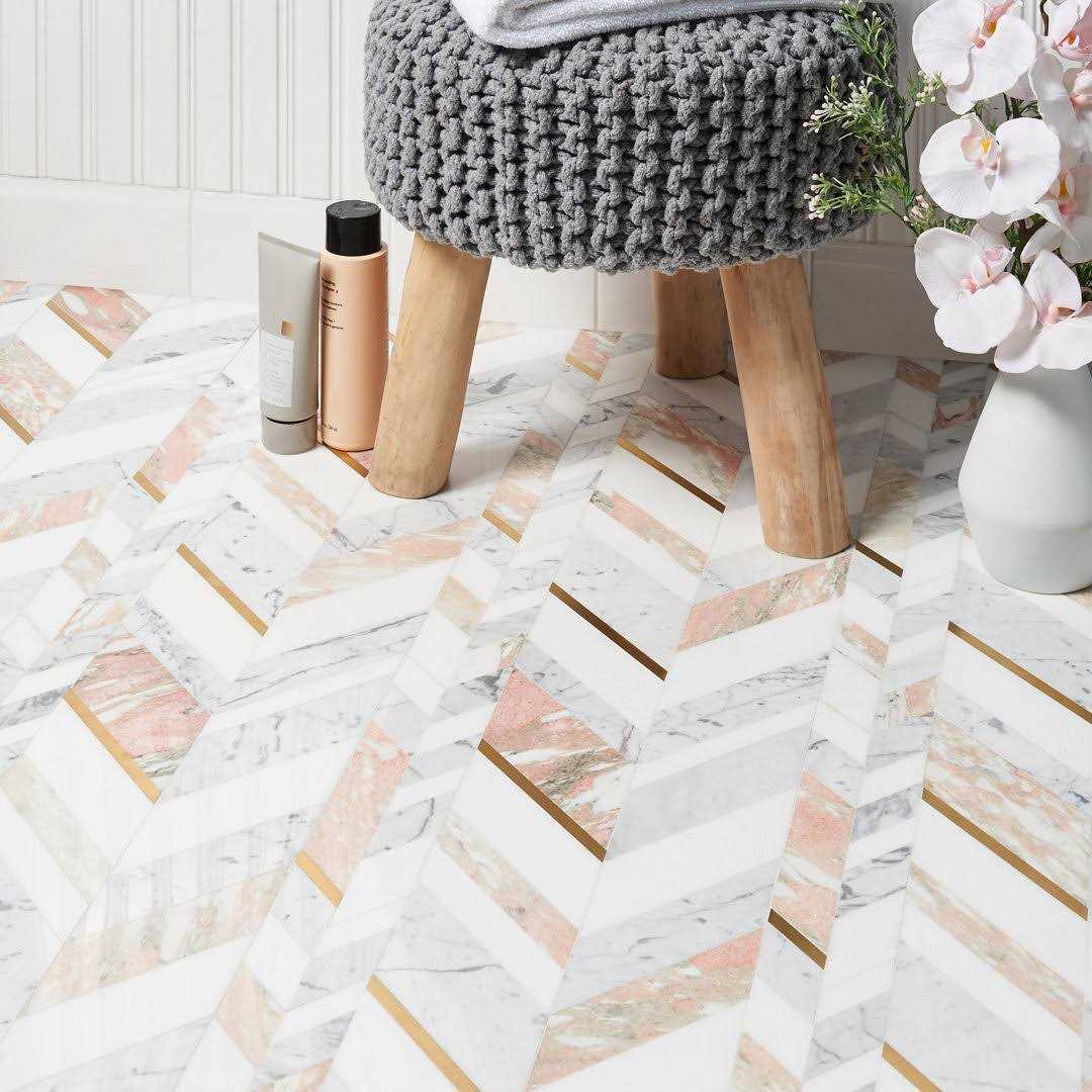 Combining the timeless herringbone pattern with a rich color palette, our Tyra collection is an art deco-inspired line with a contemporary interpretation. Incorporating high-end marble with brass and aluminum inlays, this collection of exquisite tiles expertly fuses together luxurious minimalism with a glamorous aesthetic, resulting in an eclectic and cutting-edge design. These mosaic tiles are available in 7 colorways, each showcasing the natural variations of polished marble and a gleaming finish of the metal. Playing with color and texture to create a modern and refined visual, the Amari Collection is designed to make a bold statement of elegance.