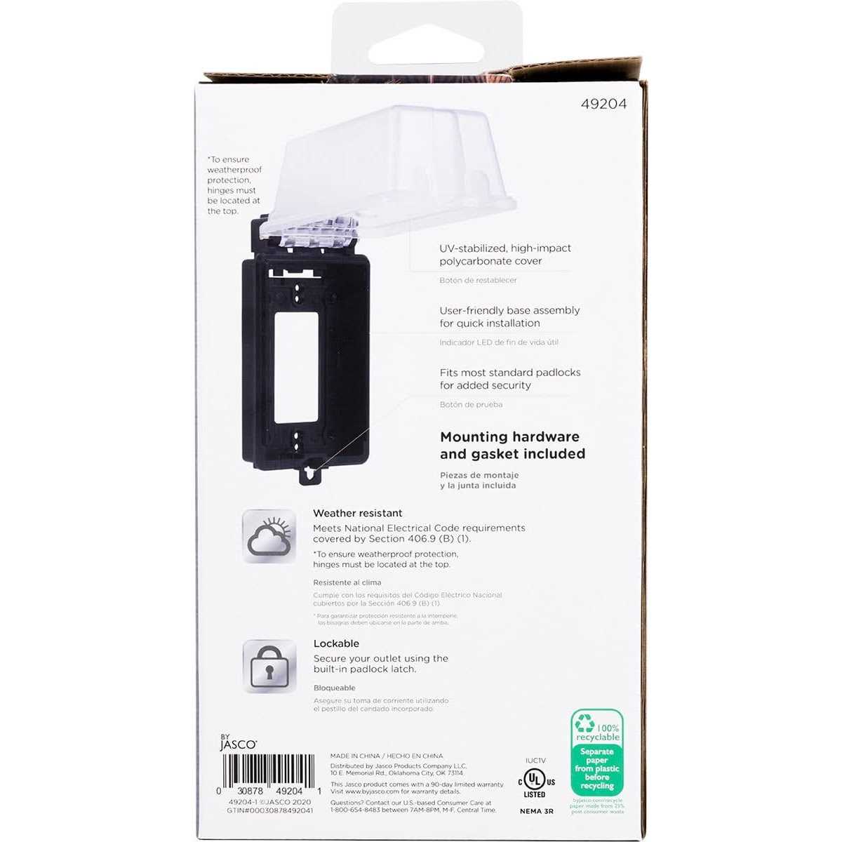 - Security – The built-in latch is perfect for most standard padlocks to prevent unauthorized use of your three-prong outlet
