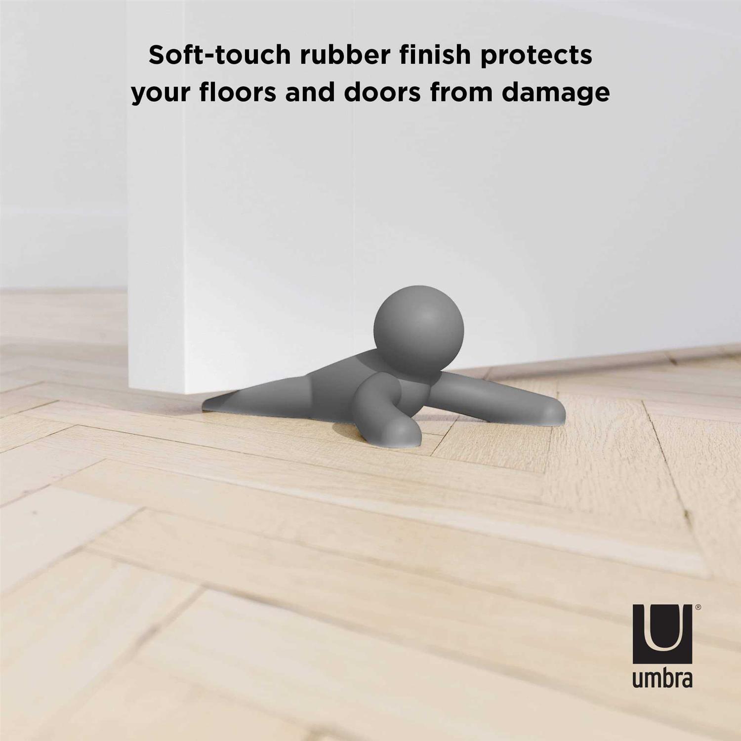 A playful and helpful tool the BUDDY DOORSTOP features Umbras signature Buddy figurine. A new addition to the Buddy Family this imaginative door stopper helps to keep your door open as it appears as if Buddy is stuck underneath the door. Made out of soft-touch thermoplastic rubber Buddy Doorstop wont skid or scratch your floors and will keep door wedged in place. For a fun door stopper and cute gift idea order Buddy Doorstop from Umbra today!