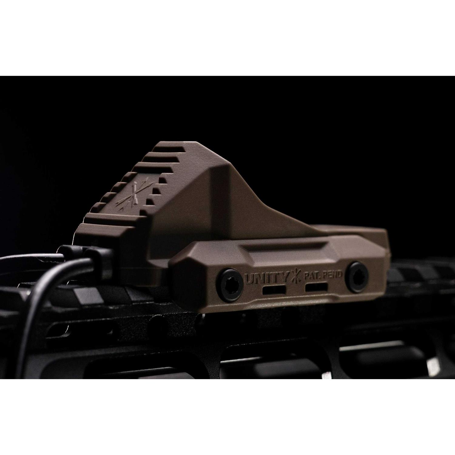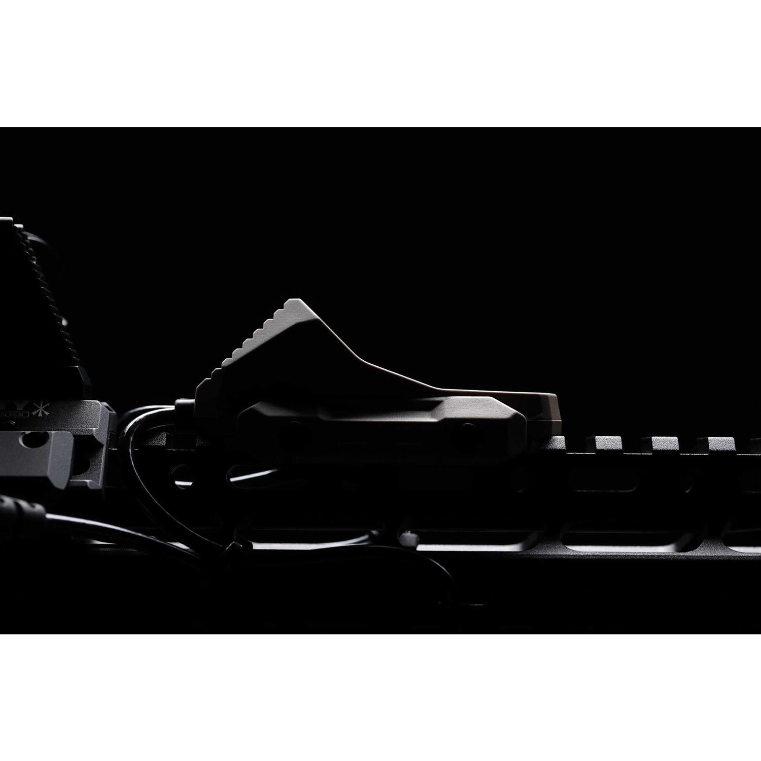 The pinnacle of remote switch design for weapon-mounted accessories” AXON provides complete control of lights and lasers in a single” compact and rugged housing. AXON is the direct result of operational feedback from professional end-users on their industry leading switch technology. Lights and lasers can be fired from individual buttons with versions available for popular issued devices. Standard AXON models feature each button firing devices independently. SYNC models fire the laser independently” while the light button will fire both light and laser simultaneously. NGAL variants operate in a SYNC capacity” but offer a visible override feature for light and laser. Standard configuration is 7″ cable length. AXON mounts directly to M1913 Rail or M-LOK (with optional M-LOK Mounting Kit). Its unique design provides tactile differentiation between the two buttons to eliminate confusion in dark” cold and high-stress situations. The light (angled) button features a switch that allows for both momentary and constant activation” while the laser button features a momentary-only button that supports the laser’s double-click-for_x0002_constant feature.
