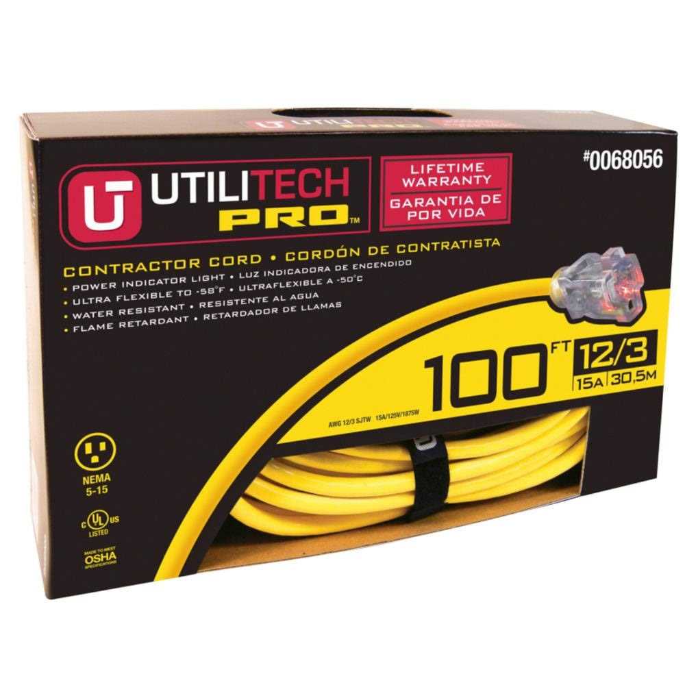 Utilitech 100-ft 12 / 3-Prong Outdoor SJTW Heavy Duty Lighted Extension Cord