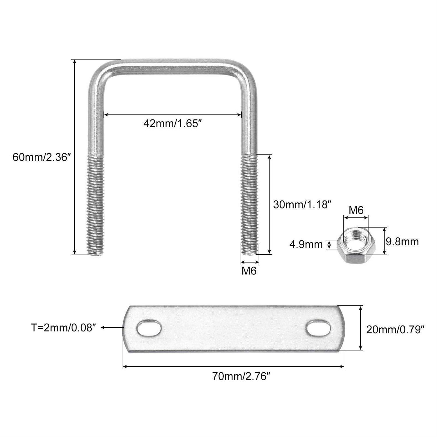 Uxcell Square U-Bolts 304 Stainless Steel, U Bolt with Nuts and Plates, for Boat Trailer | Harfington, M6x42mmx60mm
