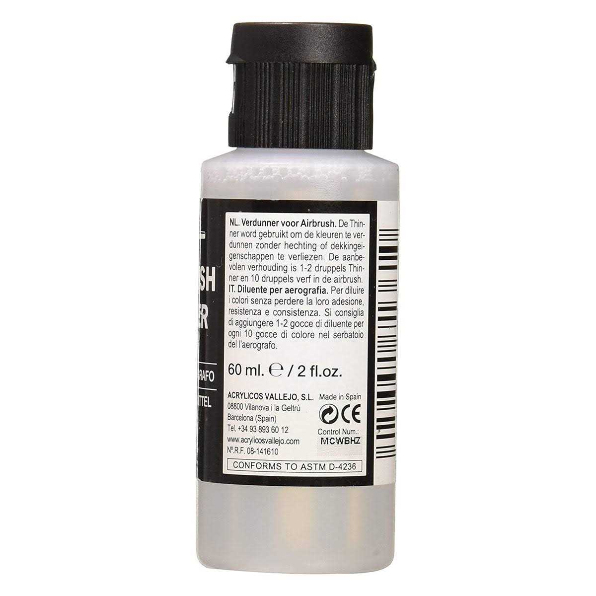 Airbrush Thinner is used to extend the colors, increase fluidity and delay their drying time. It does not alter the properties of the colors. Vallejo recommends the addition of a few drops of Thinner to the colors while airbrushing.