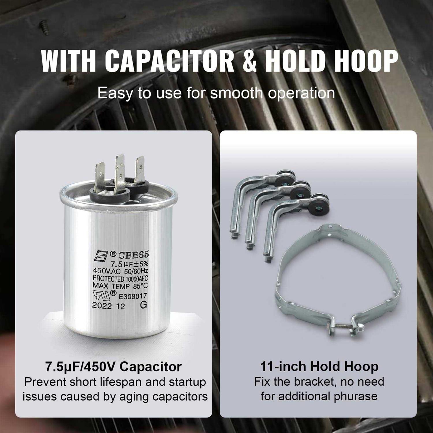 VEVOR 1/2HP Furnace Blower Motor, 208/230V 2.7Amps, 1075RPM 5 Speeds, CW/CCW Rotation, 48 Frame 3.4″ Shaft Length, 7.5μF/450V C