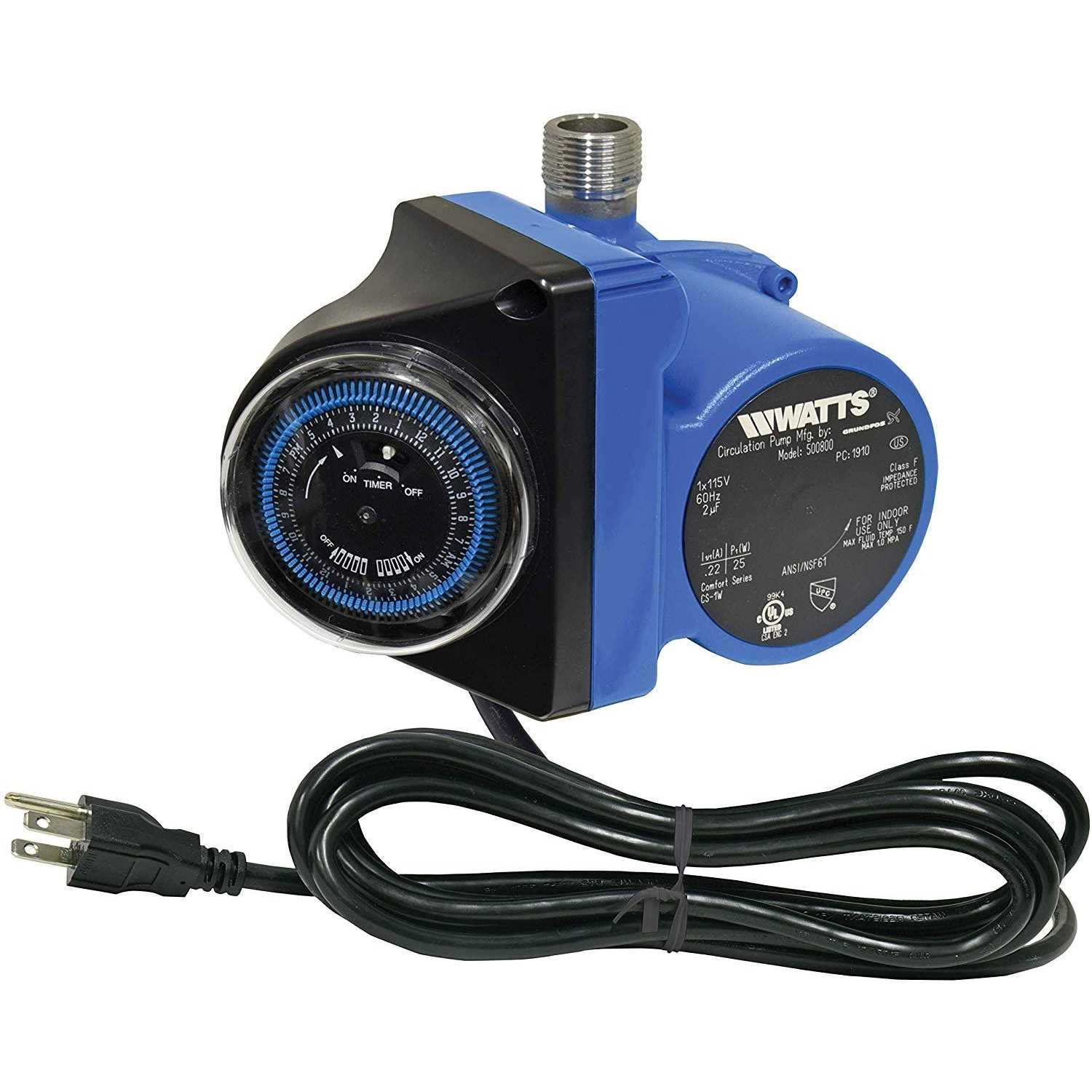 The Watts Hot Water Recirculating Pump provides hot water at every faucet or shower when needed eliminating wasted water. It is easy to install on any water system and requires no additional piping. The unique design of the pump ensures quiet maintenance-free operation. The system includes a built-in 24 hour a dual setting programmable timer to activate the pump only when needed. System that provides instant hot water to every faucet or shower in a home when you need it. Stop throwing money down the drain and waiting for your hot water.