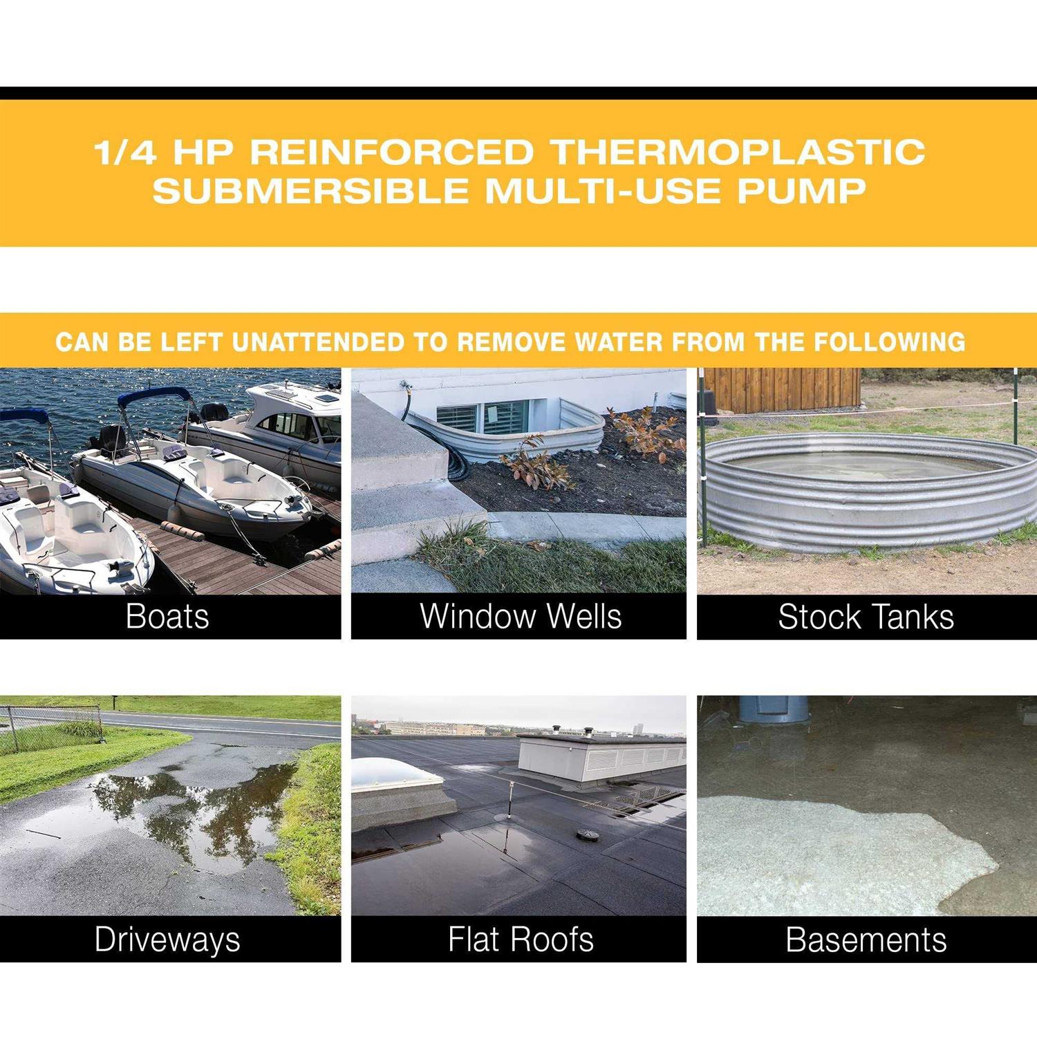 - Makes removing water from any space easy with a convenient swivel discharge garden hose adapted.