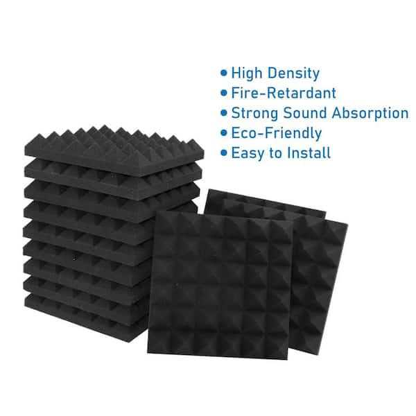 Wellco 2 in. x 12 in. x 12 in. Square Sound Absorbing Acoustic Foam Panels in Black (12-Pack)