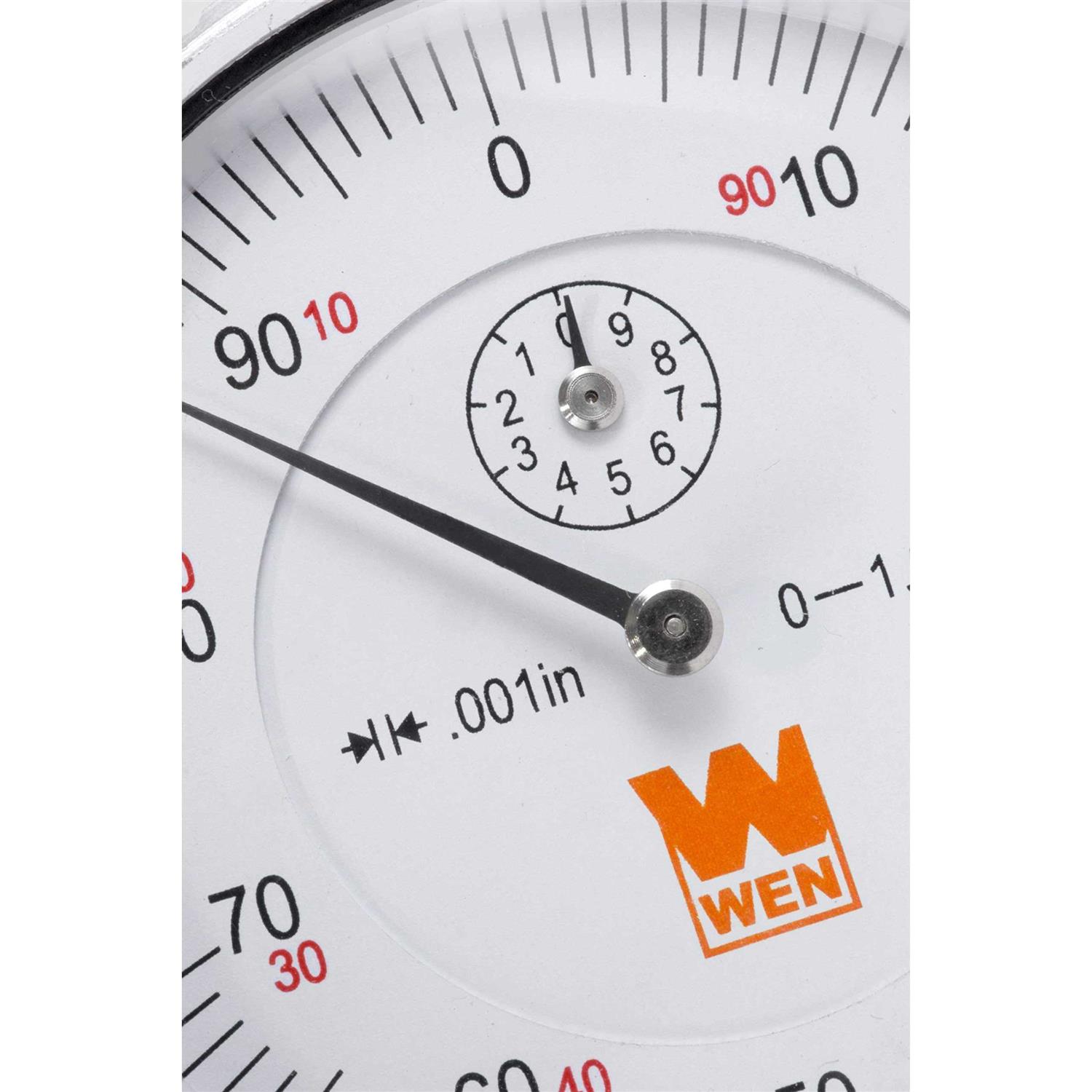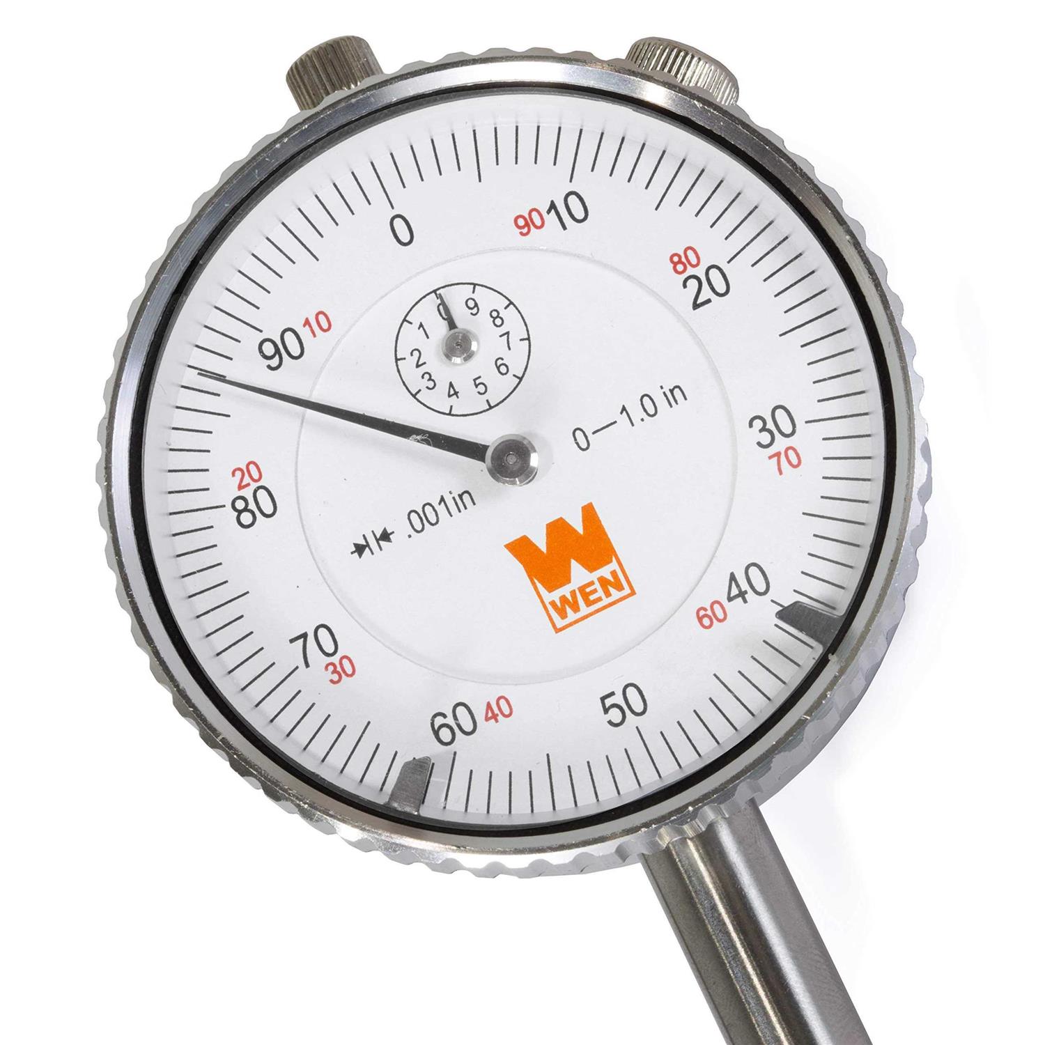 Dial Indicators by WEN. Details:Remember when you had maximum accuracy? Calibrate your test equipment, measure runout and more with the WEN 1-Inch Precision Dial Indicator. The inner wheel reports measurements with a .1-inch resolution while the outer dial has a resolution of .001 inches. The rotatable bezel allows you to orientate the display in whatever direction you need while the adjustable markers provide reference points for all your measurements. The 1/4-inch lug hole makes it easy to mount the back of your dial indicator to magnetic bases or other helpful calibration and measuring equipment. The 2-inch display face makes it easy for users to read and collect measurements, while the 1-1/2-inch by 3/16-inch spring-loaded plunger retracts easily and smoothly.