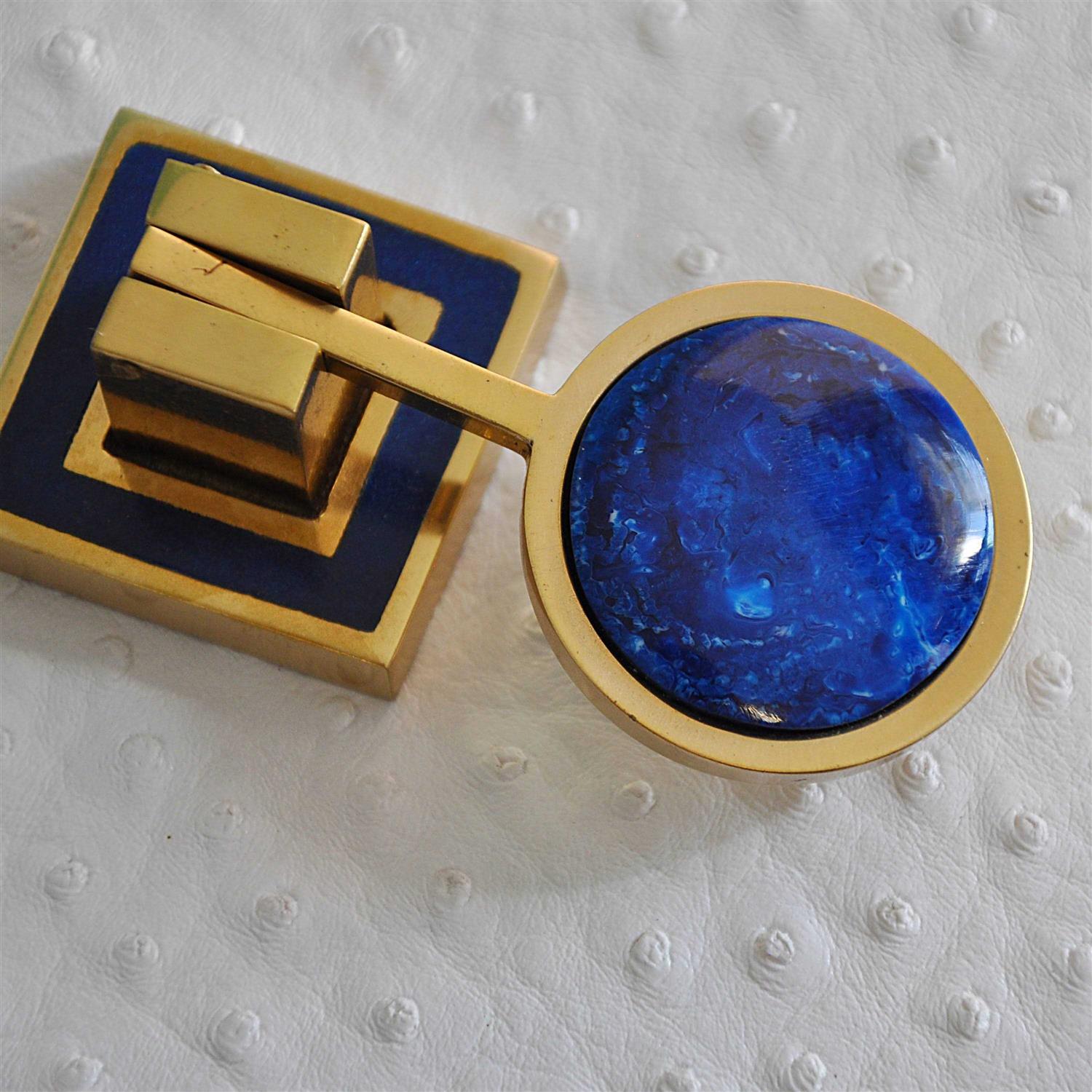 Worlds Away Milan Brass Pull Knob with Inset Resin in Marbled Blue