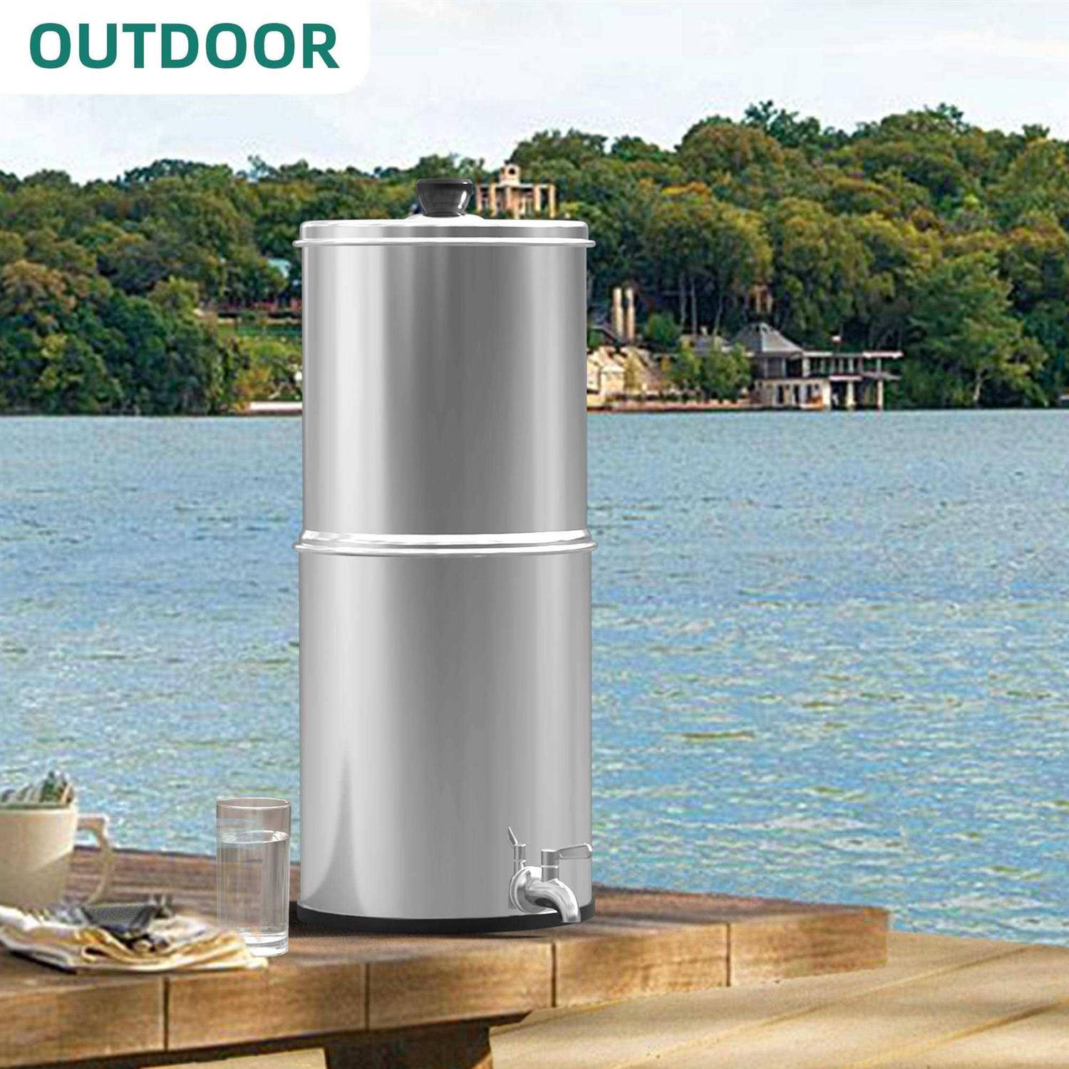 3-Stage Filtration Water Purifier System: The gravity water filter system adopts a composite filter technology, can reduce most contaminants Large capacity, small footprint: 2.25 gallons filtered with large capacity. The upper and lower barrels can be opened and stacked for storage, occupying a small storage area Longer Filter Life: The two carbon filters (black) have the filtration capacity of up to 6,000 gallons of water(According to different water quality, the lifespan of the filter elements would be a little different) Durable and Sturdy Structure: The barrel body is made of 0.8mm thick 304 stainless steel, and the faucet is also made of stainless steel Energy Saving: Relying on the principle of gravity filtration, no electricity is needed. The gravity water filter system is divided into upper and lower chambers
